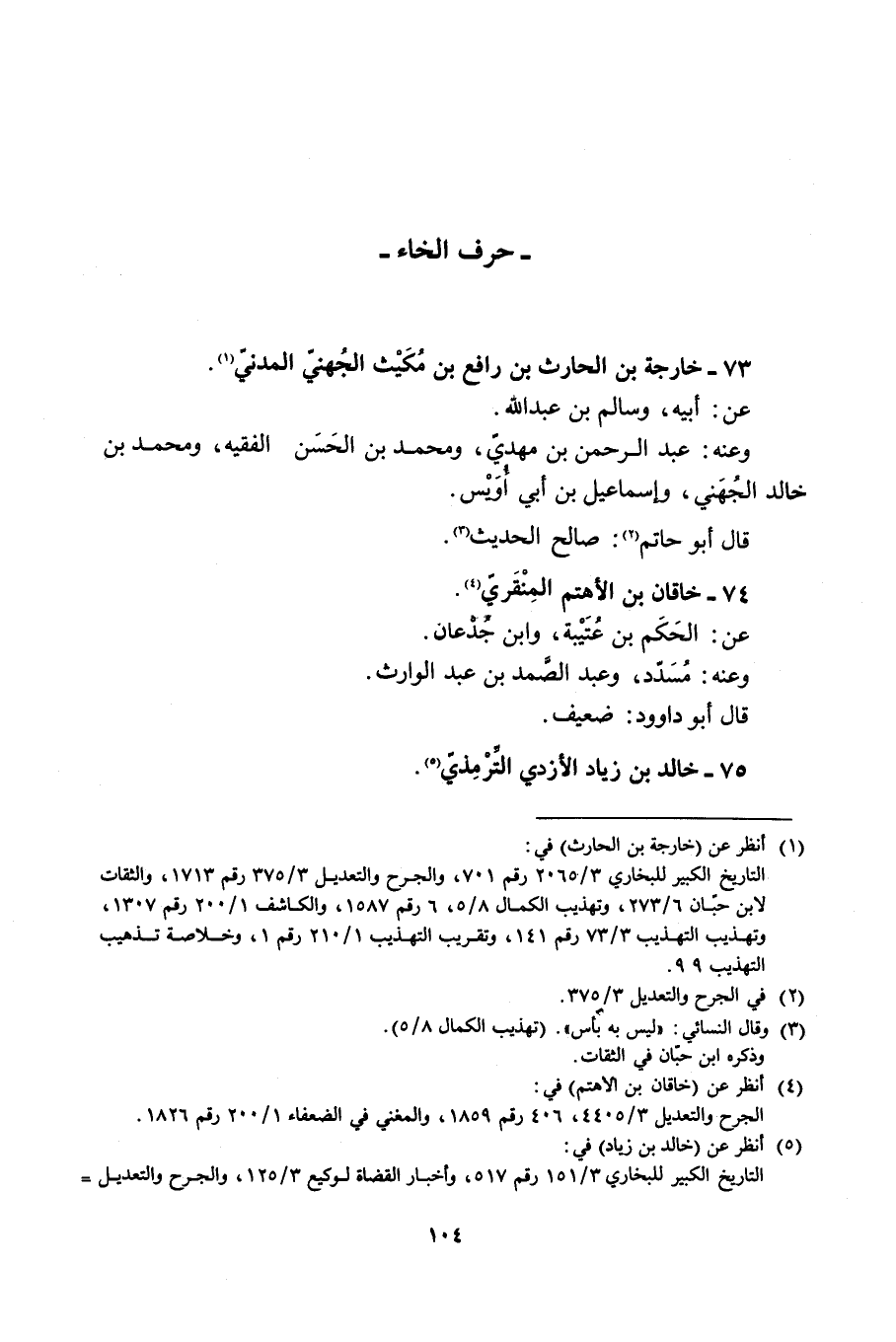 73- خَارِجَةُ بْنُ الْحَارِثِ بْنِ رَافِعِ بْنِ مُكَيْثٍ الْجُهَنِيُّ الْمَدَنِيُّ [1] .