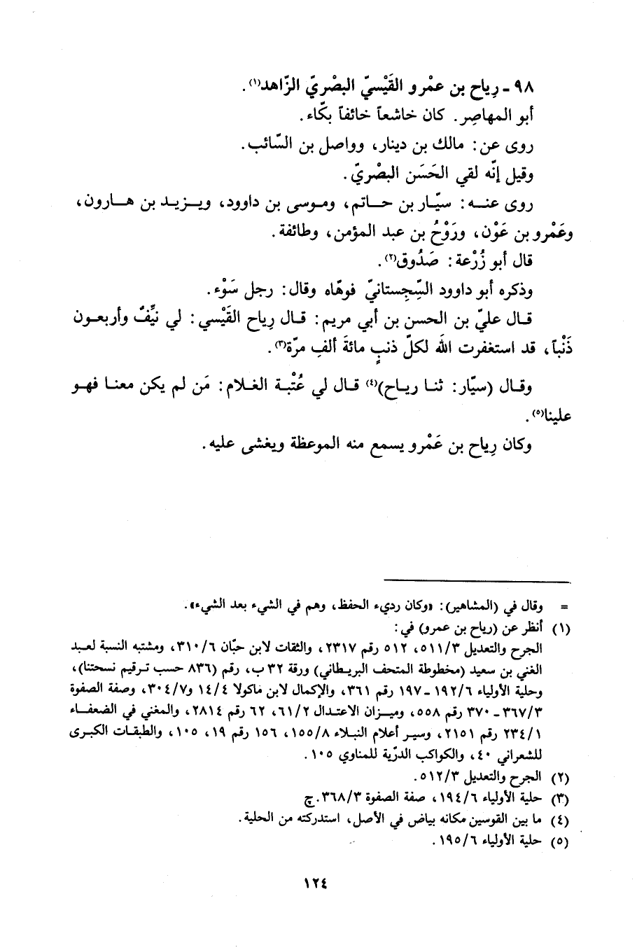98- رِيَاحُ بْنُ عَمْرٍو الْقَيْسِيُّ الْبَصْرِيُّ الزَّاهِدُ [1] .