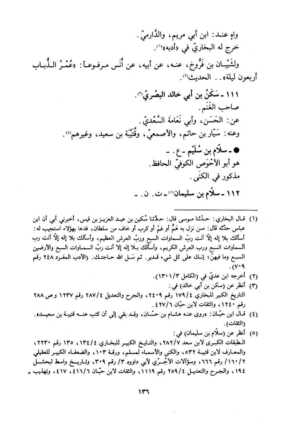 وَلِشَيْبَانَ بْنِ فَرُّوخٍ، عَنْهُ، عَنْ أَبِيهِ، عَنْ أَنَسٍ مَرْفُوعًا: «عُمْرُ الذُّبَابِ أَرْبَعُونَ لَيْلَةً» .. الْحَدِيثَ [2] . 111- سَكَنُ بْنُ أَبِي خَالِدٍ الْبَصْرِيُّ [3] .