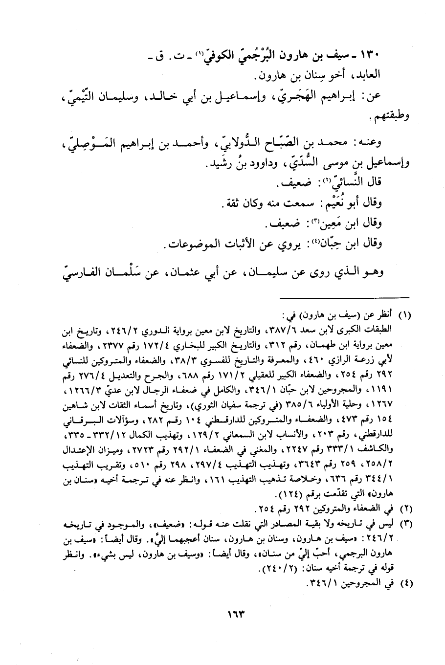 130- سَيْفُ بْنُ هَارُونَ الْبُرْجُمِيُّ الْكُوفِيُّ [1]- ت. ق- الْعَابِدُ، أَخُو سِنَانَ بْنِ هَارُونَ.