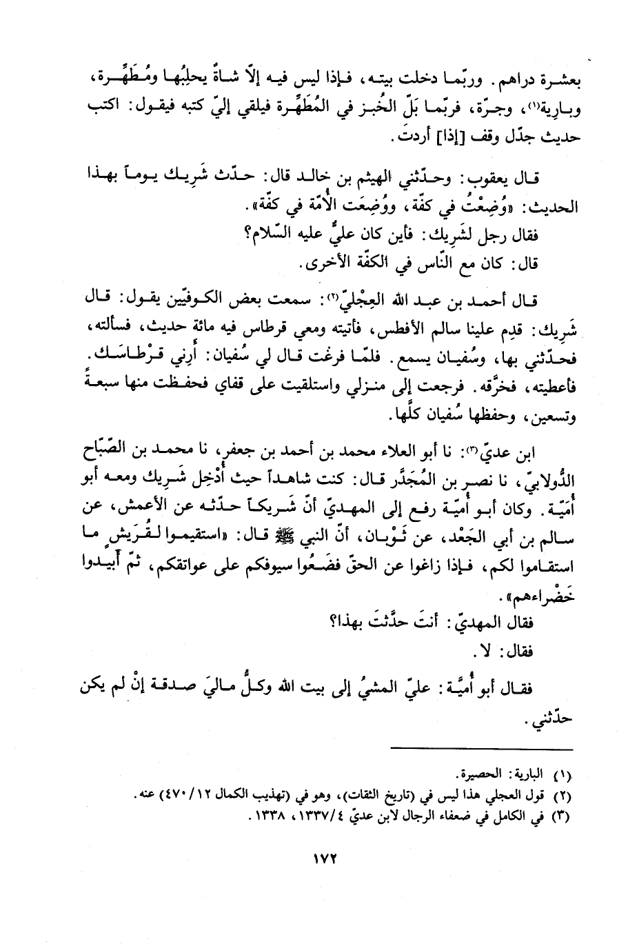 قَالَ يَعْقُوبُ: وَحَدَّثَنِي الْهَيْثَمُ بْنُ خَالِدٍ قَالَ: حَدَّثَ شَرِيكٌ يَوْمًا بِهَذَا الْحَدِيثِ: «وُضِعْتُ فِي كِفَّةٍ، وَوُضِعَتِ الأُمَّةُ فِي كِفَّةٍ» . فَقَالَ رَجُلٌ لِشَرِيكٍ: فَأَيْنَ كَانَ عَلِيٌّ عَلَيْهِ السَّلامُ؟