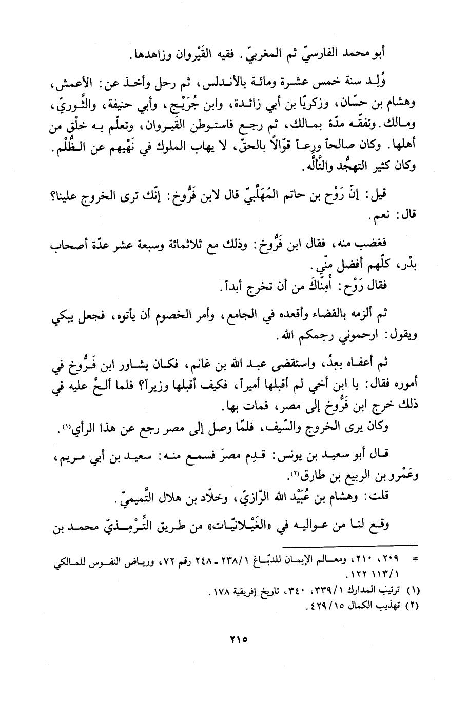 [209، 210،) ] ومعالم الإيمان للدبّاغ 1/ 238- 248 رقم 72، ورياض النفوس للمالكي 1/ 113، 122.