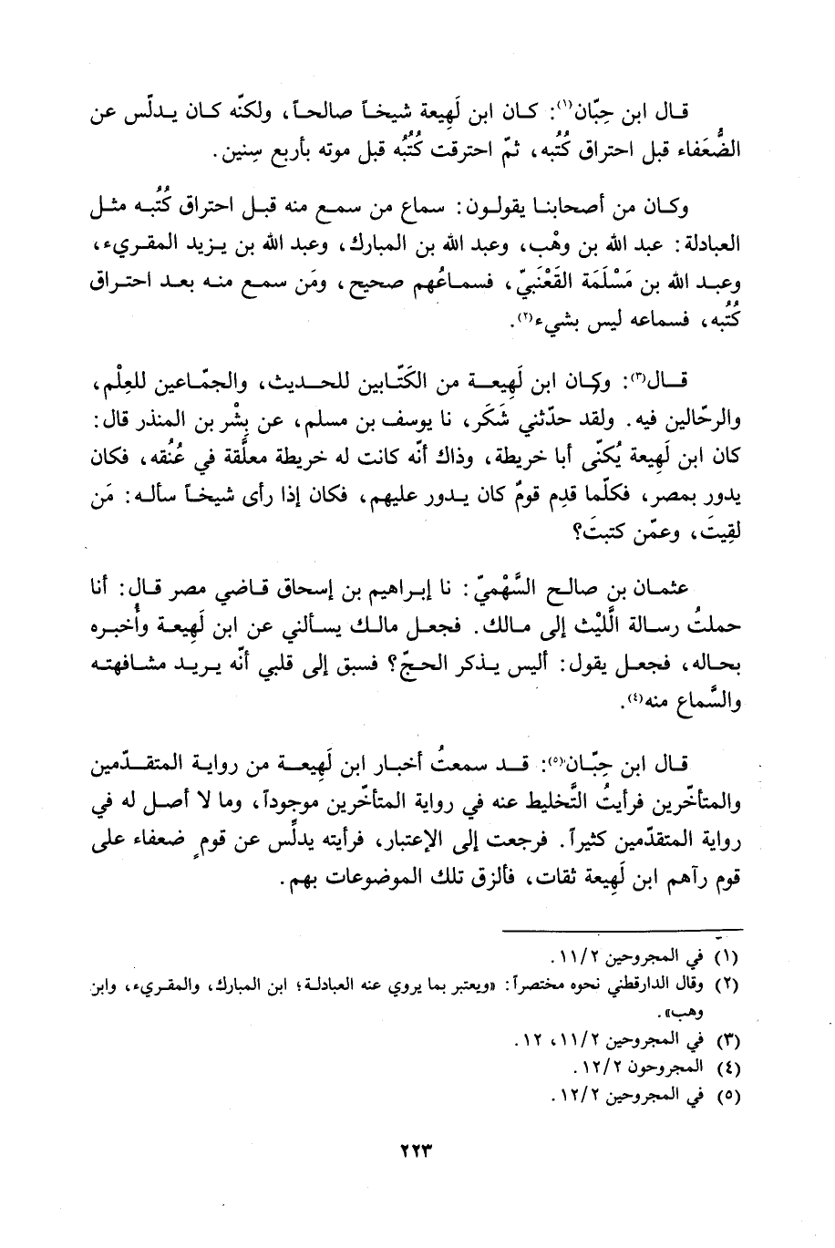 قَالَ ابْنُ حِبَّانَ [1] : كَانَ ابْنُ لَهِيعَةَ شَيْخًا صَالِحًا، وَلَكِنَّهُ كَانَ يُدَلِّسُ عَنِ الضُّعَفَاءِ قَبْلَ احْتِرَاقِ كُتُبِهِ، ثُمَّ احْتَرَقَتْ كُتُبُهُ قَبْلَ مَوْتِهِ بِأَرْبَعِ سِنِينَ.