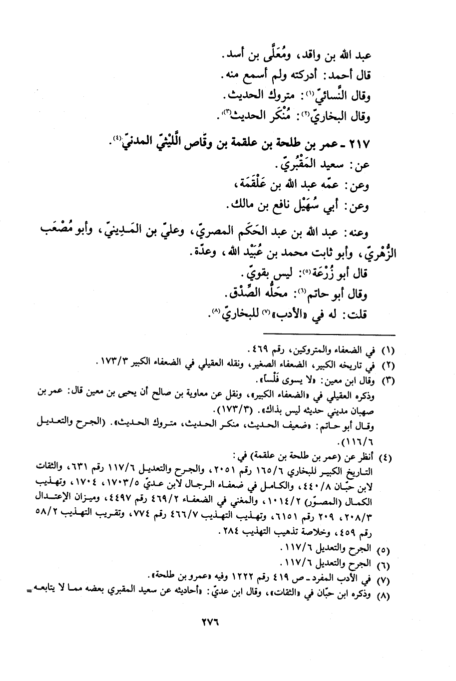 217- عُمَرُ بْنُ طَلْحَةَ بْنِ عَلْقَمَةَ بْنِ وَقَّاصٍ اللَّيْثِيُّ الْمَدَنِيُّ [4] .