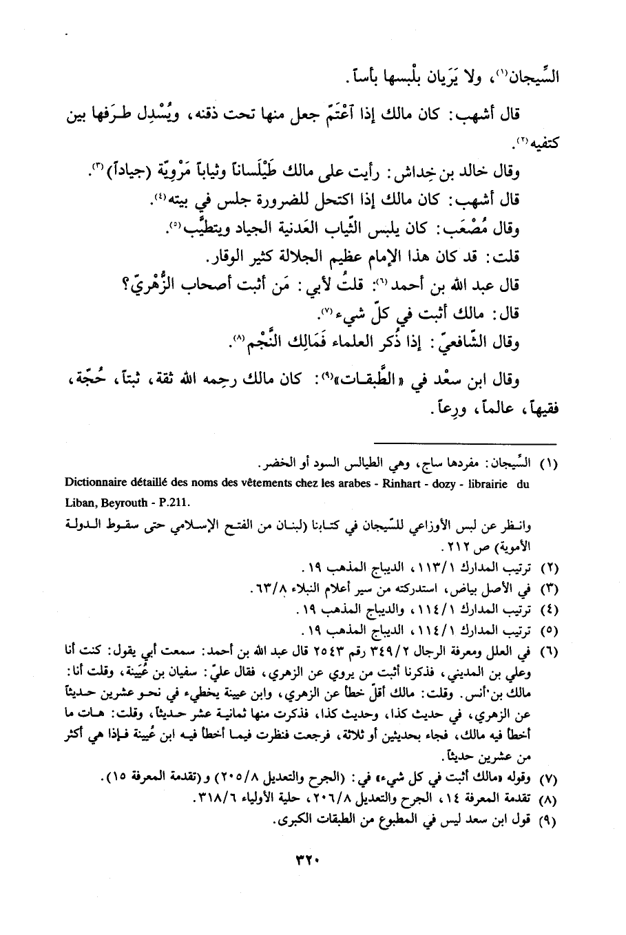 Liban ,Beyrouth -P.211.ntschezlesarabes -rinhart -dozy -librairieduوانظر عن لبس الأوزاعي للسّيجان في كتابنا (لبنان من الفتح الإسلامي حتى سقوط الدولة الأموية) ص 212.