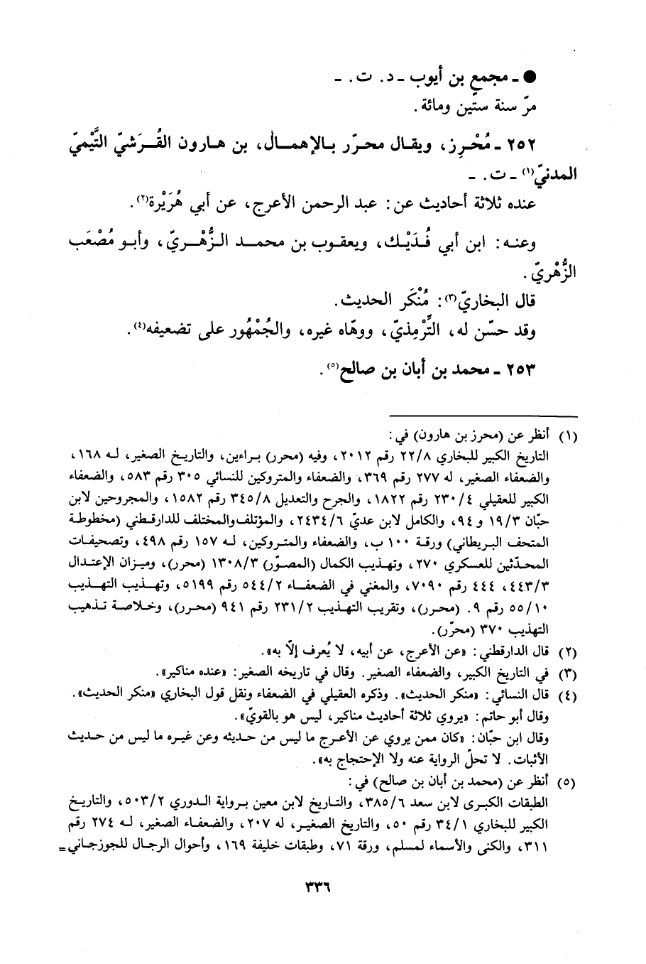 252- محرز، ويقال محرّز بِالإِهْمَالِ، بْنُ هَارُونَ الْقُرَشِيُّ التَّيْمِيُّ الْمَدَنِيُّ [1]- ت. - عِنْدَهُ ثَلاثَةُ أَحَادِيثَ عَنْ: عَبْدِ الرَّحْمَنِ الأَعْرَجِ، عَنْ أَبِي هُرَيْرَةَ [2] .