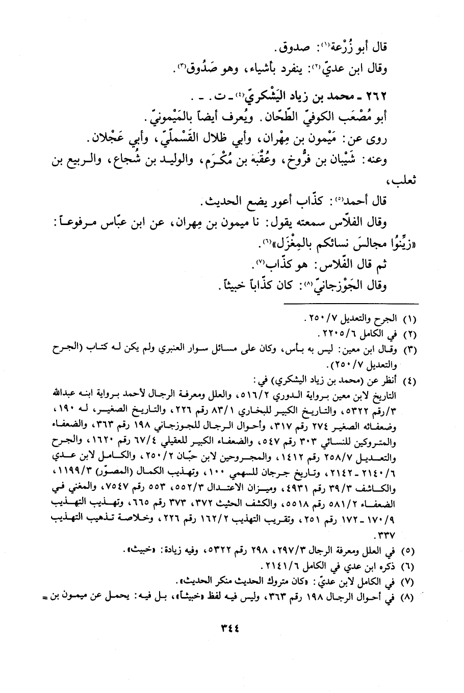 [8] في أحوال الرجال 198 رقم 363، وليس فيه لفظ «خبيثا» ، بل فيه: يحمل عن ميمون بن
