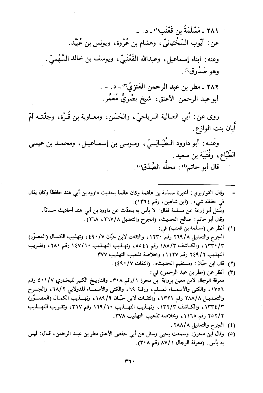 281- مُسْلِمَةُ بْنُ قَعْنَبٍ [1]- د. - عَنْ: أَيُّوبَ السَّخْتِيَانِيِّ، وَهِشَامِ بْنِ عُرْوَةَ، وَيُونُسَ بْنِ عُبَيْدٍ.