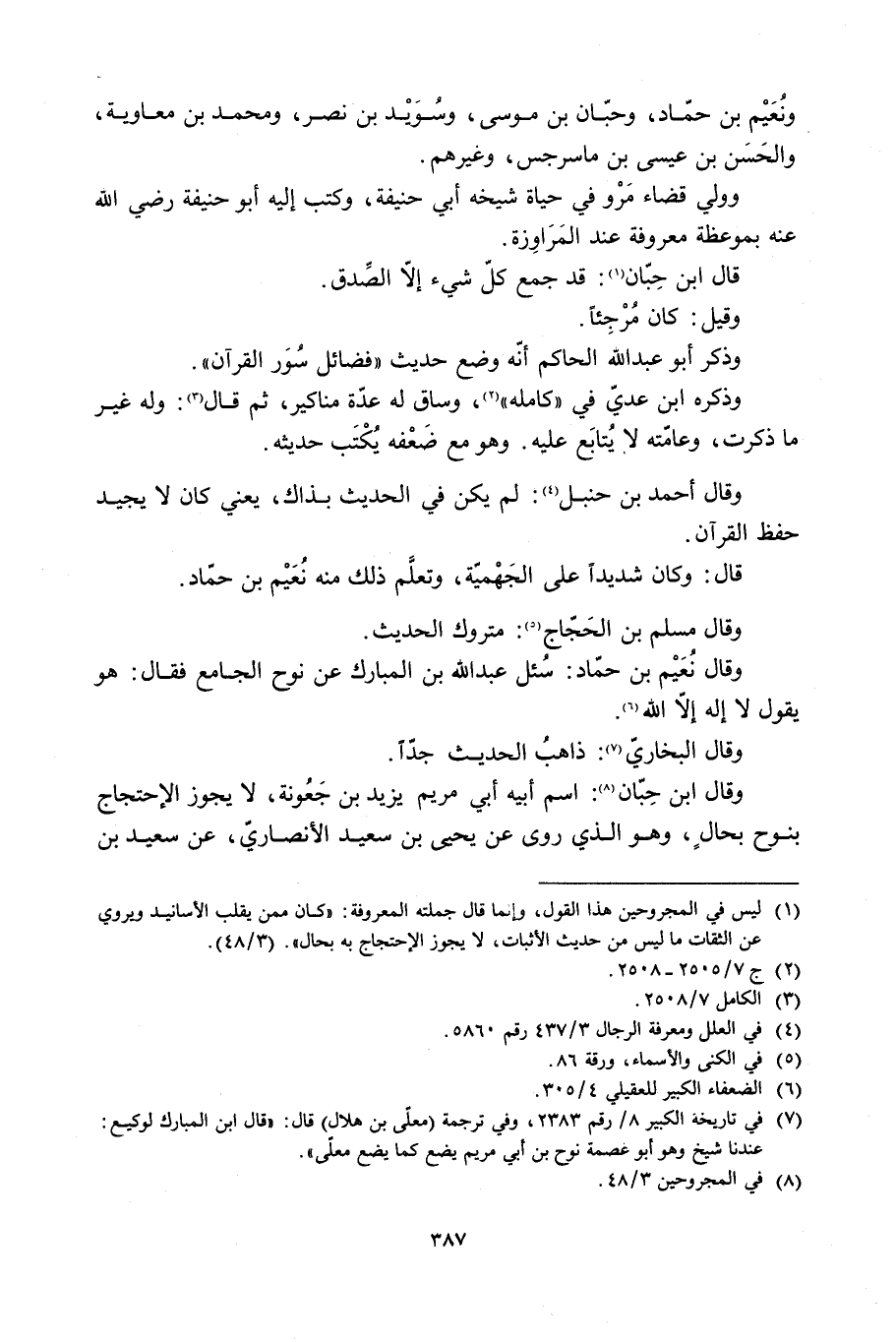وَقَالَ نُعَيْمُ بْنُ حَمَّادٍ: سُئِلَ عَبْدُ اللَّهِ بْنُ الْمُبَارَكِ عَنْ نُوحٍ الْجَامِعِ فَقَالَ: هُوَ يَقُولُ لا إِلَهَ إِلا اللَّهُ [6] .