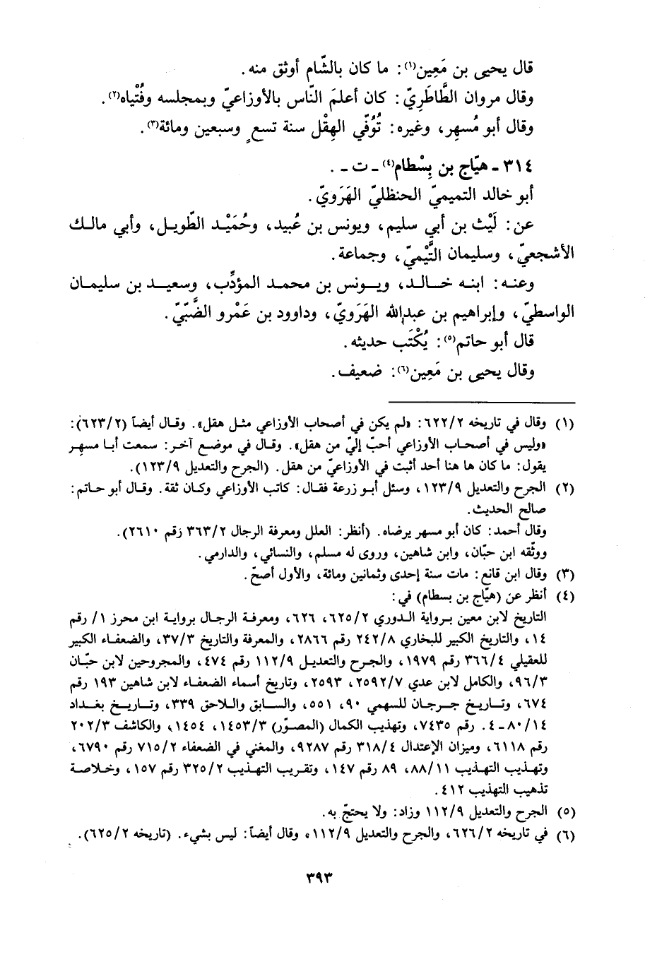 [6] في تاريخه 2/ 626، والجرح والتعديل 9/ 112، وقال أيضا: ليس بشيء. (تاريخه 2/ 625) .