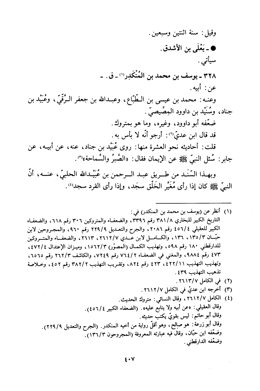 328- يُوسُفُ بْنُ مُحَمَّدِ بْنِ الْمُنْكَدِرِ [1]- ق. - عَنْ: أَبِيهِ.