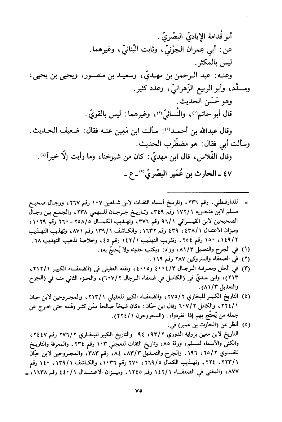 [4] التاريخ الكبير للبخاريّ 2/ 275، والضعفاء الكبير للعقيليّ 1/ 213، والمجروحين لابن حبان 1/ 224، والكامل 2/ 607، وقال ابن حبّان: «كان شيخا صالحا ممّن كثر وهمه حتى خرج عن جملة من يحتج بهم إذا انفردوا» . (المجروحون 1/ 224) .