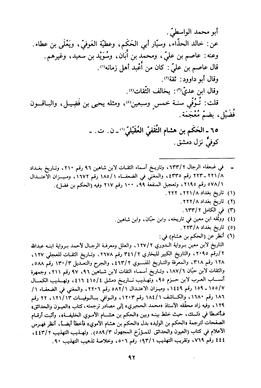 65- الْحَكَمُ بْنُ هِشَامٍ الثَّقَفِيُّ الْعُقَيْلِيُّ [6]- ن. ت. - كوفيّ نزل دمشق.