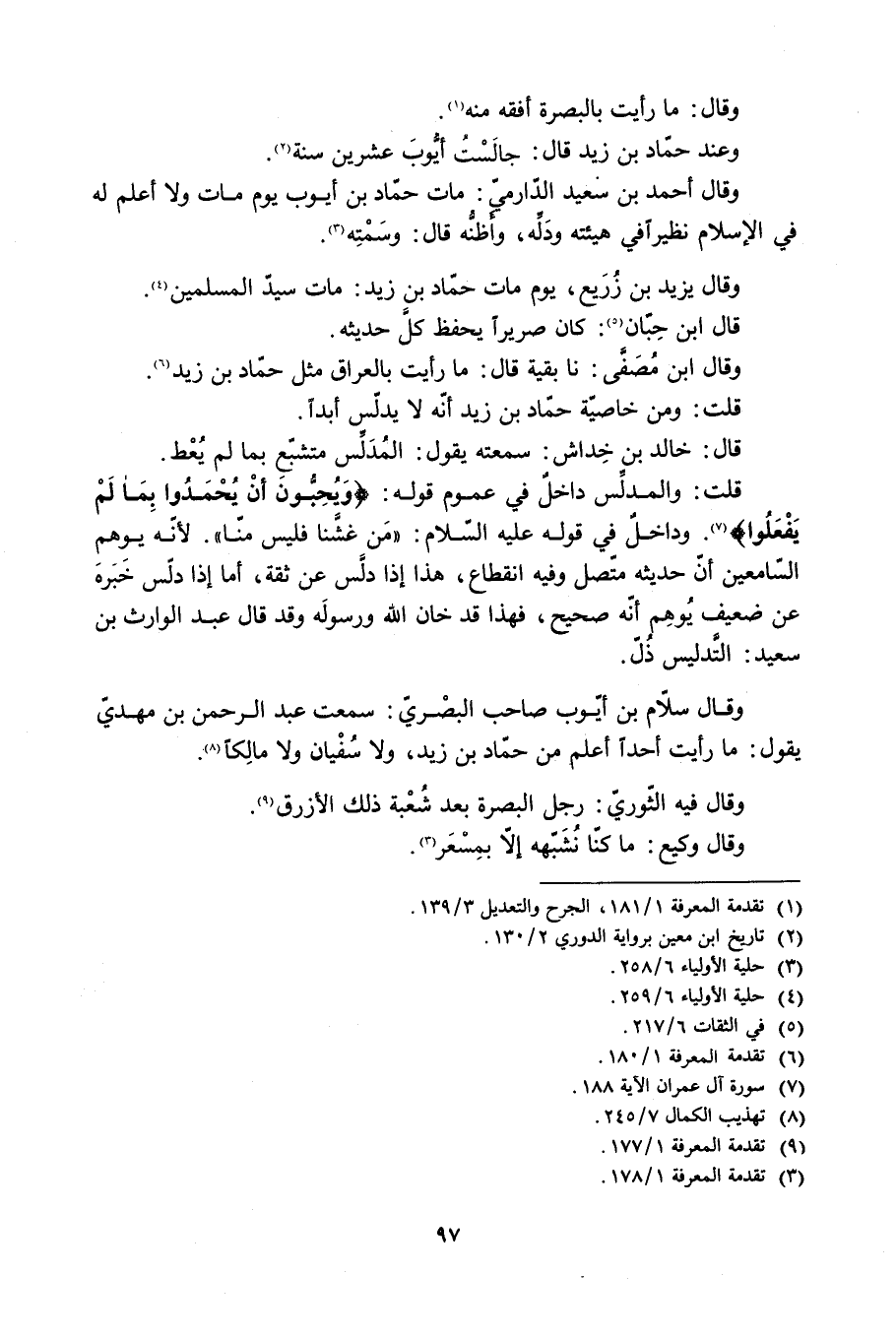 قلت: ومن خَاصِيَّةِ حَمَّادِ بْنِ زَيْدٍ أَنَّهُ لا يُدَلِّسُ أَبَدًا.
