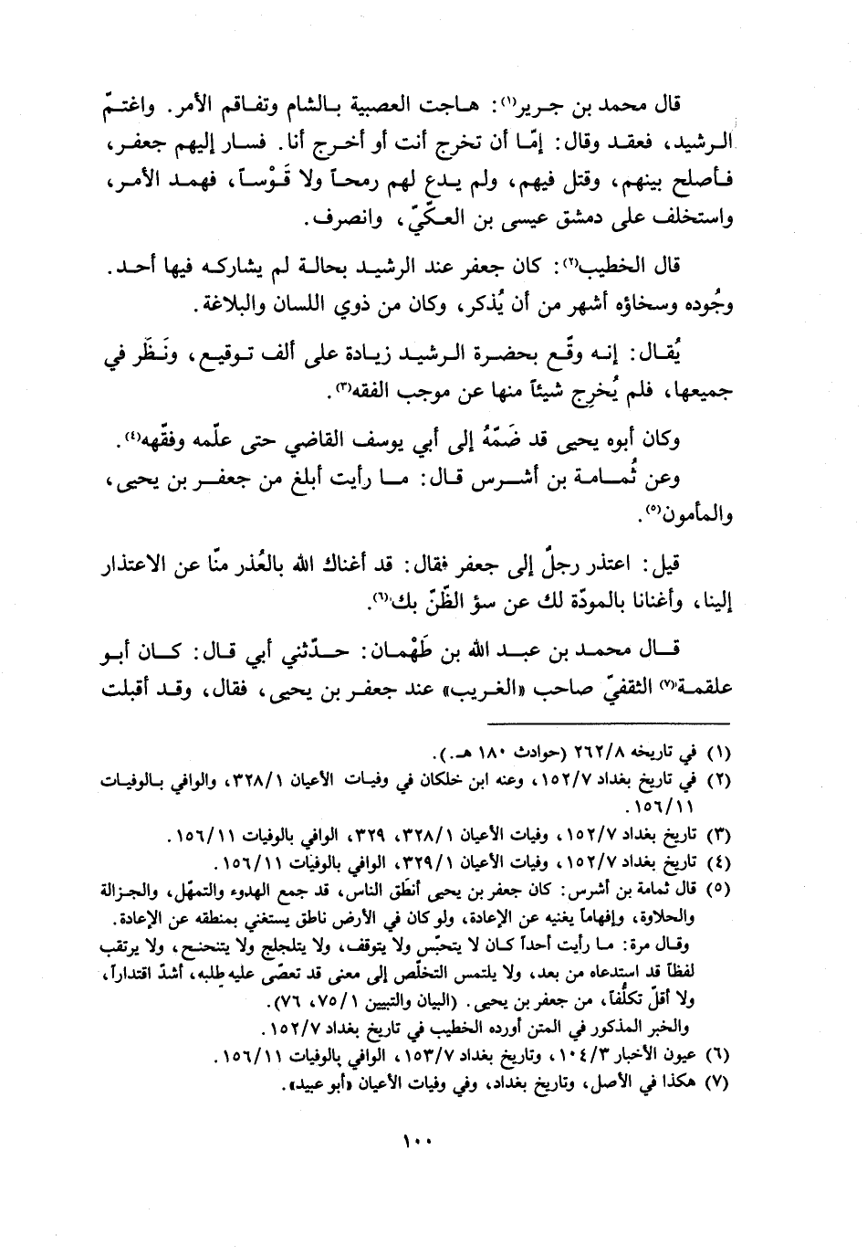 [4] تاريخ بغداد 7/ 152، وفيات الأعيان 1/ 329، الوافي بالوفيات 11/ 156.