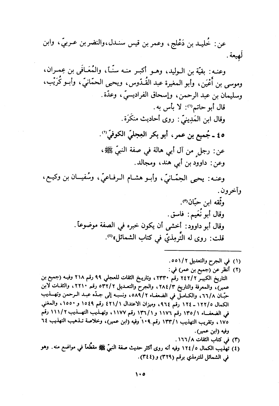 [4] تهذيب الكمال 5/ 124 وفيه أنه روى أكثر حديث صفة النبيّ صلى الله عليه وسلّم مقطّعا في مواضع منه. وهو في الشمائل للترمذي برقم (329) و (344) .
