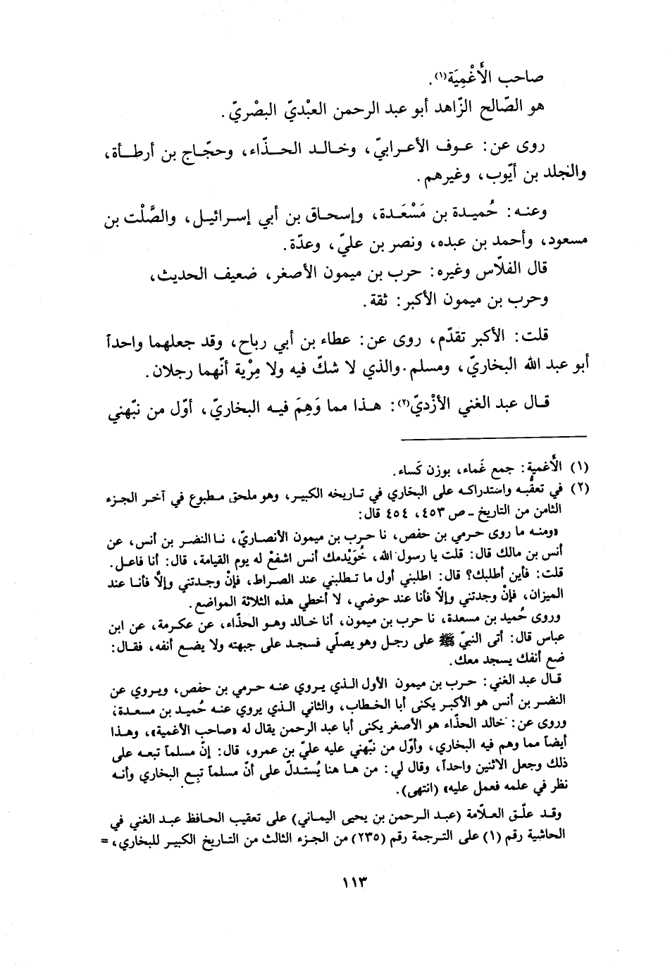 وقد علّق العلّامة (عبد الرحمن بن يحيى اليماني) على تعقيب الحافظ عبد الغني في الحاشية رقم (1) على الترجمة رقم (235) من الجزء الثالث من التاريخ الكبير للبخاريّ،