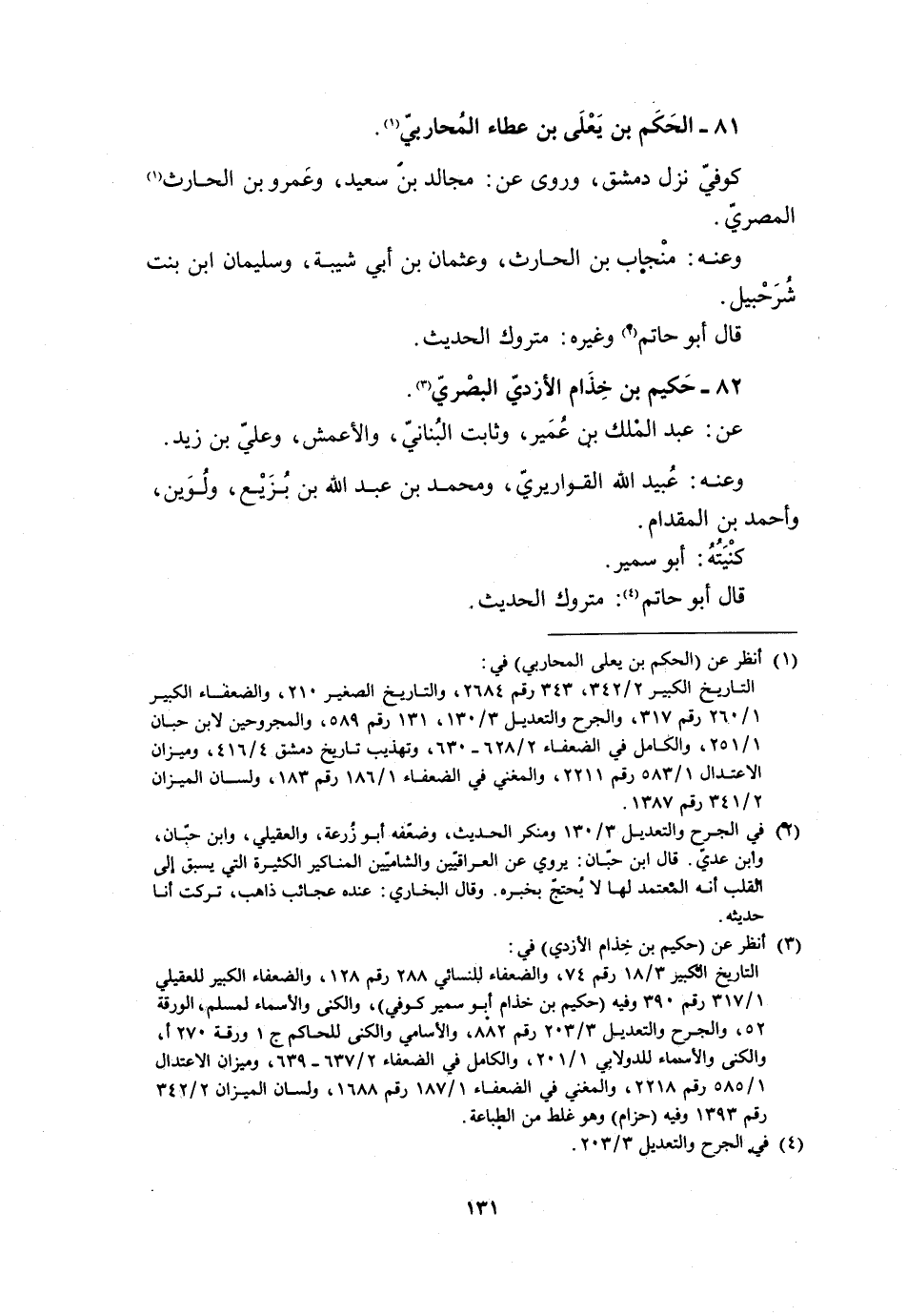 81- الْحَكَمُ بْنُ يَعْلَى بْنِ عَطَاءٍ الْمُحَارِبِيُّ [1] .