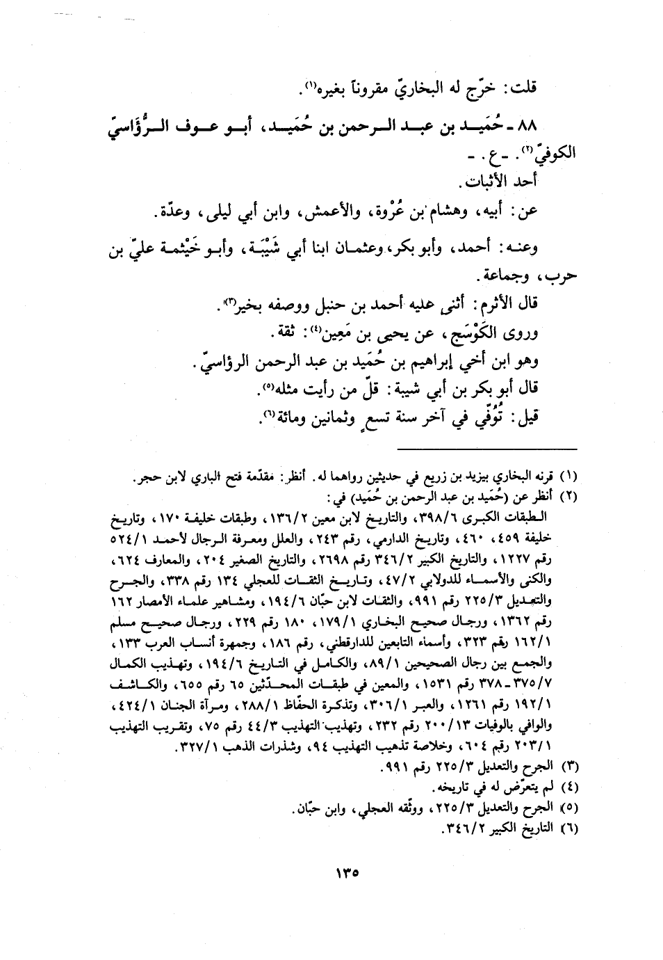 88- حُمَيْدُ بن عبد الرحمن بن حميد، أبو عَوْفٍ الرُّؤَاسِيُّ الْكُوفِيُّ [2] . - ع. - أَحَدُ الأَثْبَاتِ.