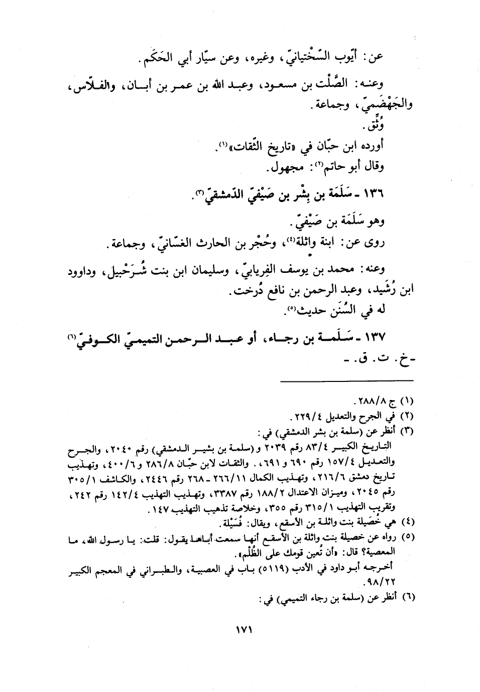 [3] انظر عن (سلمة بن بشر الدمشقيّ) في: