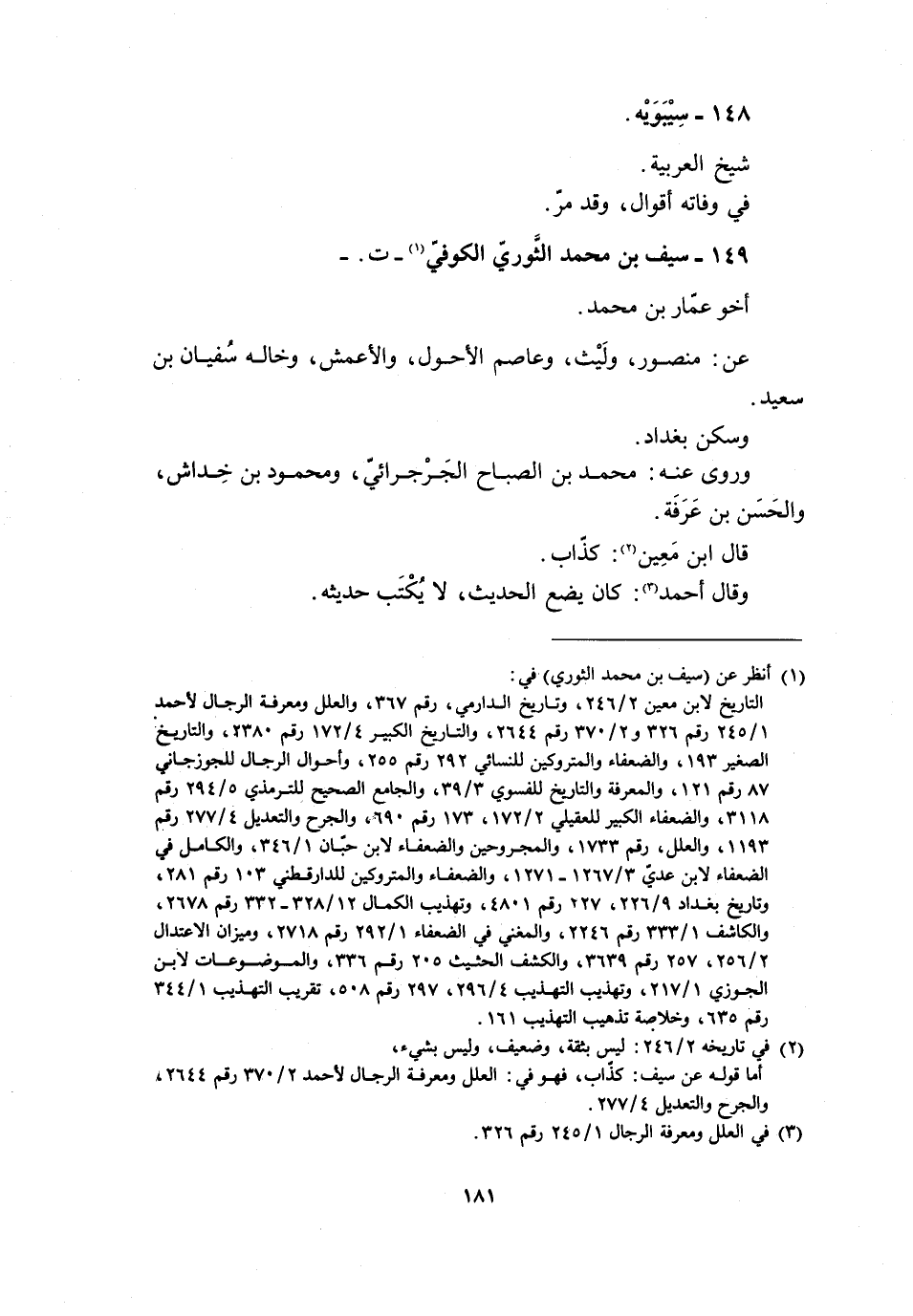 149- سَيْفُ بْنُ مُحَمَّدٍ الثَّوْرِيُّ الْكُوفِيُّ [1]- ت. - أَخُو عَمَّارِ بْنِ مُحَمَّدٍ.