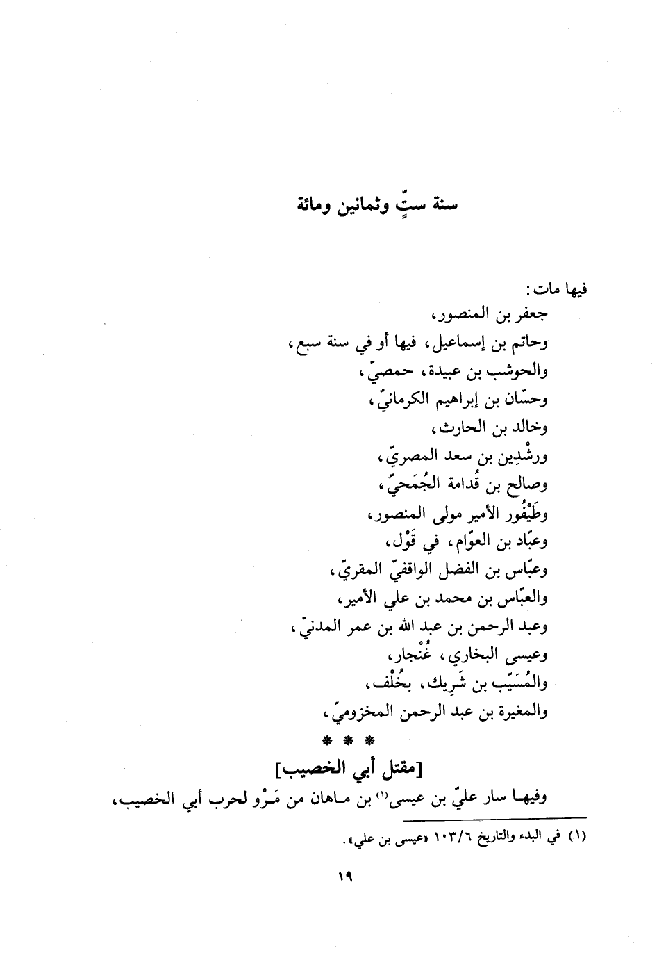 وَفِيهَا سَارَ عَلِيُّ بْنُ عِيسَى [1] بْنِ مَاهَانَ مِنْ مَرْوٍ لِحَرْبِ أَبِي الْخَصِيبِ،