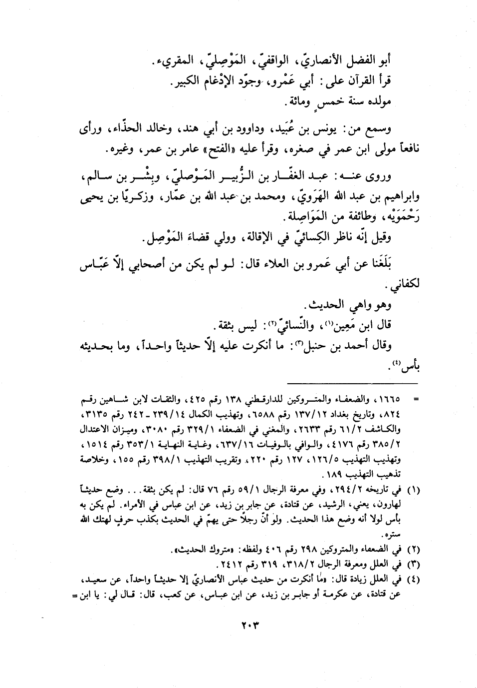 [1665،) ] والضعفاء والمتروكين للدارقطنيّ 138 رقم 425، والثقات لابن شاهين رقم 824، وتاريخ بغداد 12/ 137 رقم 6588، وتهذيب الكمال 14/ 239- 242 رقم 3135، والكاشف 2/ 61 رقم 2633، والمغني في الضعفاء 1/ 329 رقم 3080، وميزان الاعتدال 2/ 385 رقم 4176، والوافي بالوفيات 16/ 637، وغاية النهاية 1/ 353 رقم 1514، وتهذيب التهذيب 5/ 126، 127 رقم 220، وتقريب التهذيب 1/ 398 رقم 155، وخلاصة تذهيب التهذيب 189.