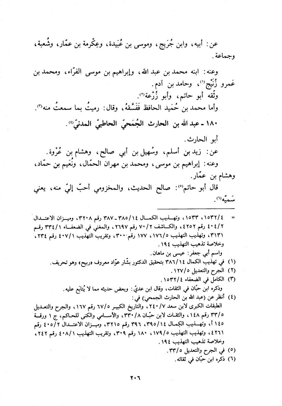 180- عَبْدُ اللَّهِ بْنُ الْحَارِثِ الْجُمَحِيُّ الْحَاطِبِيُّ الْمَدَنِيُّ [4] .