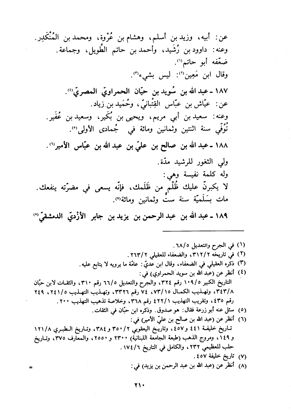 189- عَبْدُ اللَّهِ بْنُ عَبْدِ الرَّحْمَنِ بْنِ يَزِيدَ بْنِ جابر الأزديّ الدمشقيّ [8]