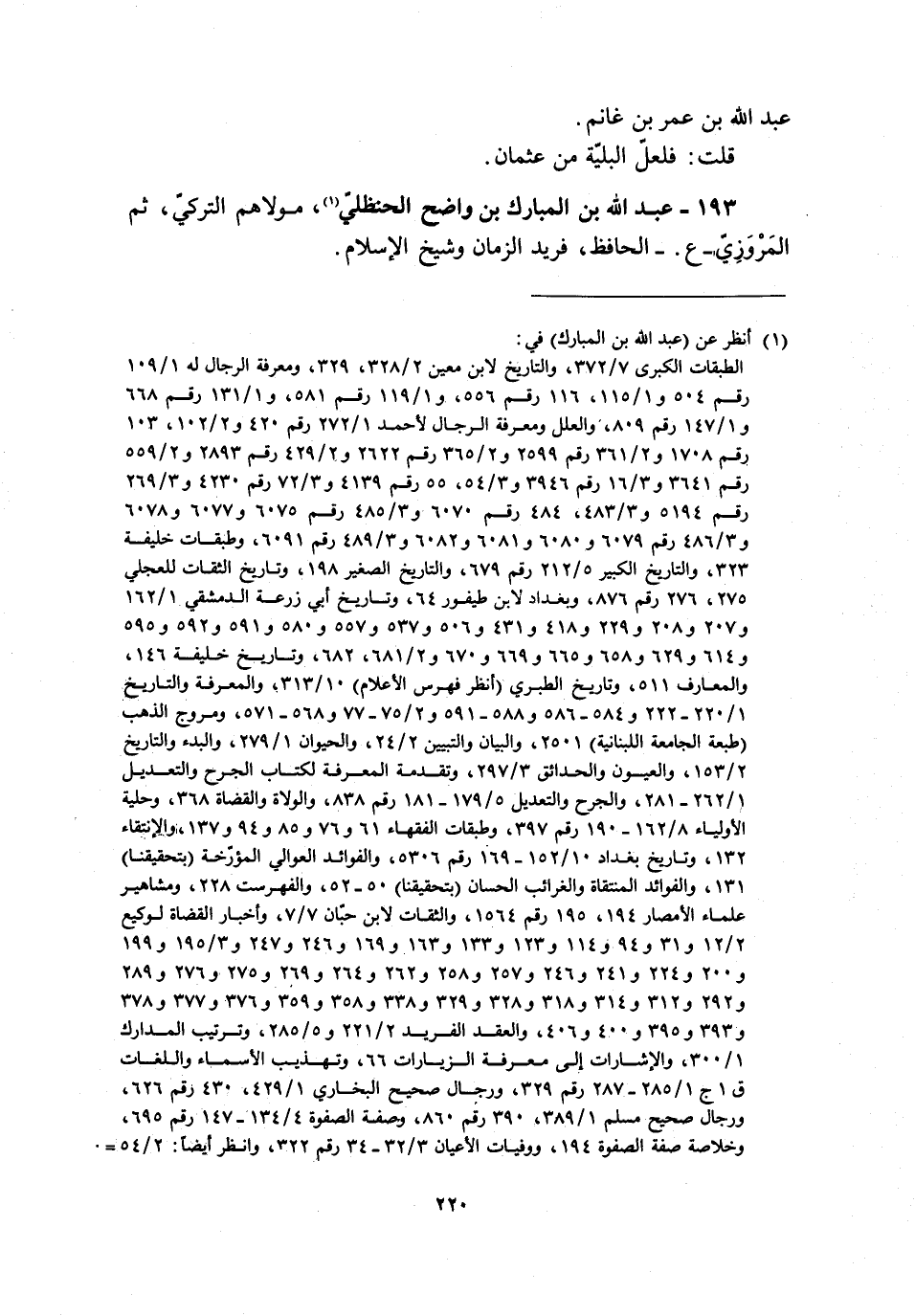 193- عبد الله بن المبارك بن واضح الحنظليّ [1] ، مولاهم التركيّ، ثمّ المَرْوَزِيّ- ع. - الحافظ، فريد الزمان وشيخ الإسلام.