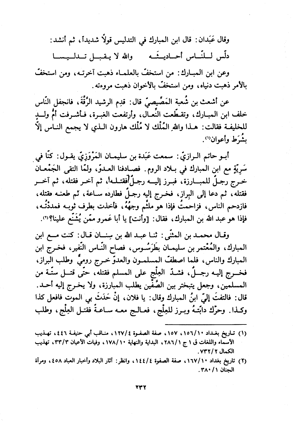 [2] تاريخ بغداد 10/ 167، صفة الصفوة 4/ 144، وانظر: آثار البلاد وأخبار العباد 458، ومرآة الجنان 1/ 380.