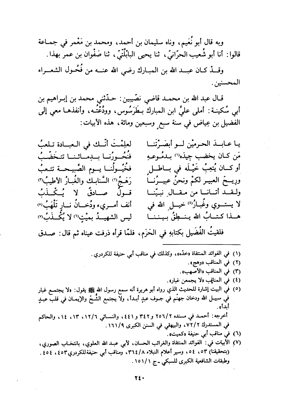 [7] الأبيات في: الفوائد المنتقاة والغرائب الحسان، لأبي عبد الله العلويّ، بانتخاب الصوري، (بتحقيقنا) 53، 54، وسير أعلام النبلاء 8/ 364، ومناقب أبي حنيفة للكردري 453، 454.