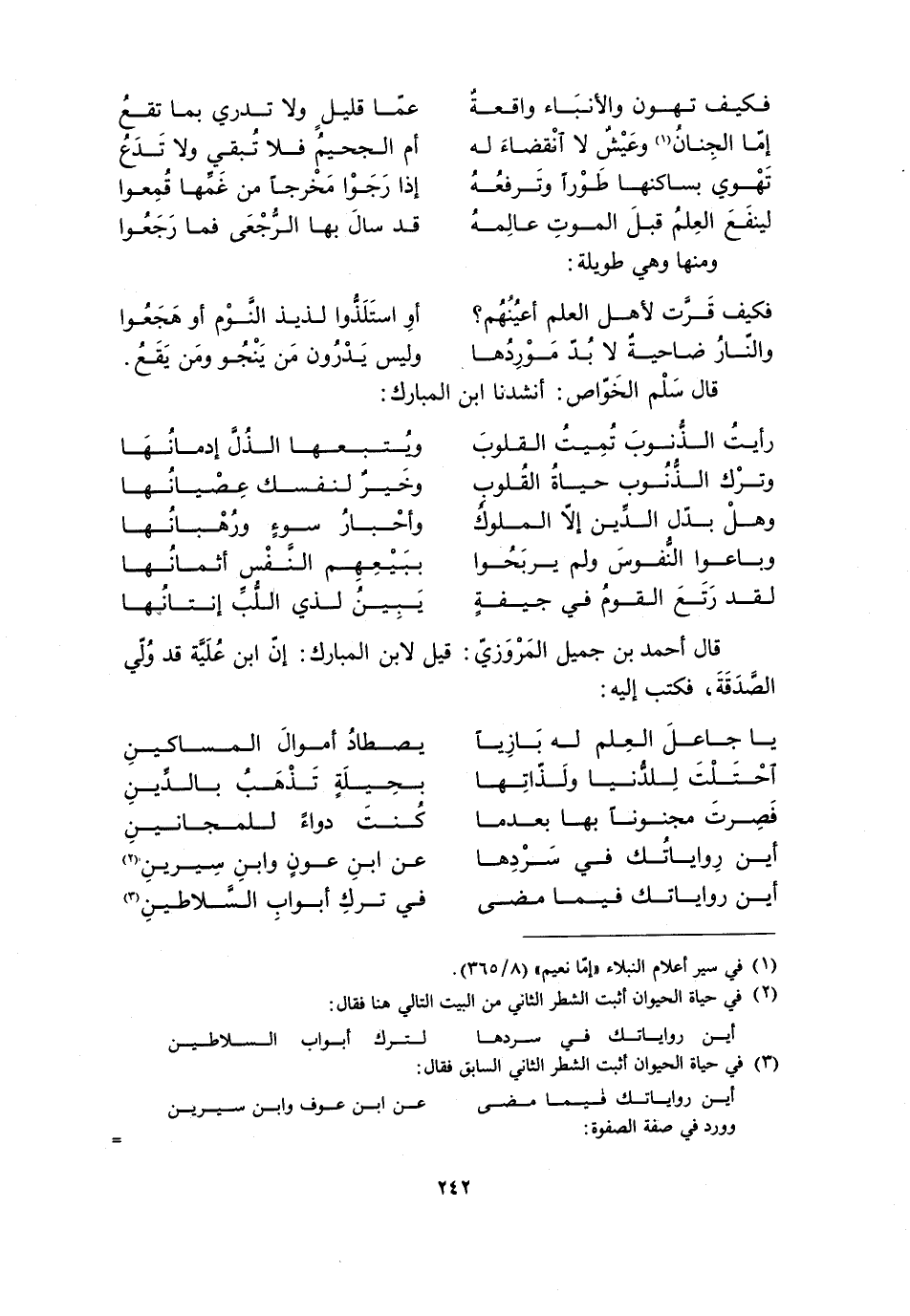 قال سَلْم الخوّاص: أنشدنا ابن المبارك: