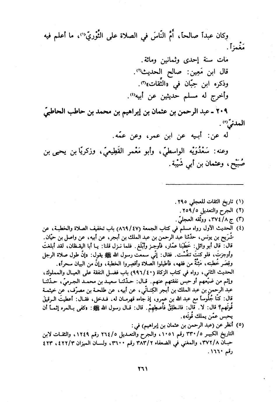 209- عبد الرحمن بن عثمان بن إبراهيم بن محمد بن حاطب الحاطبيّ المدنيّ [5] .