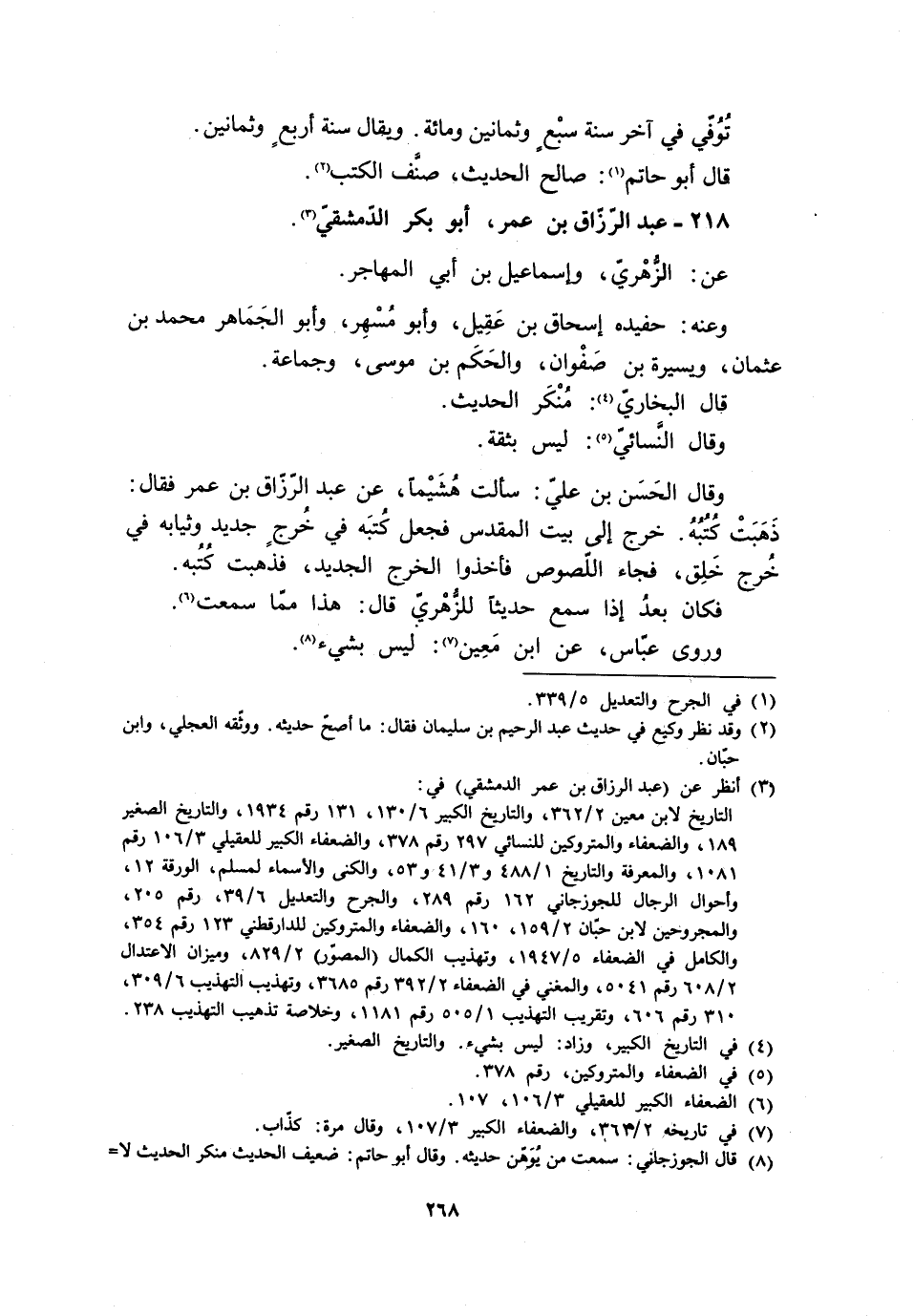 [4] في التاريخ الكبير، وزاد: ليس بشيء. والتاريخ الصغير.