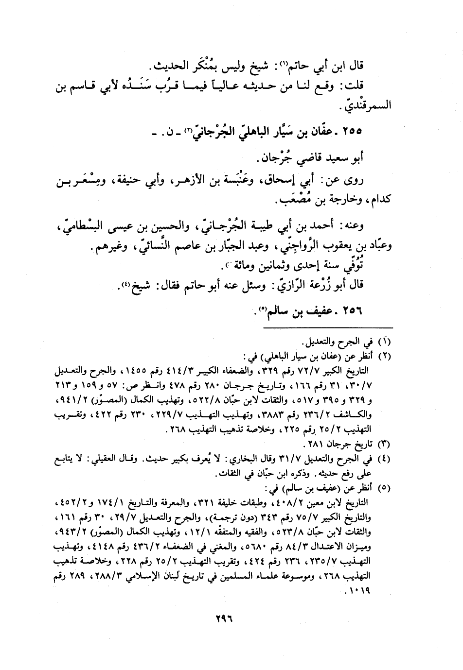 255- عفّان بن سيّار الباهليّ الجرجانيّ [2]- ن. - أبو سعيد قاضي جُرْجان.