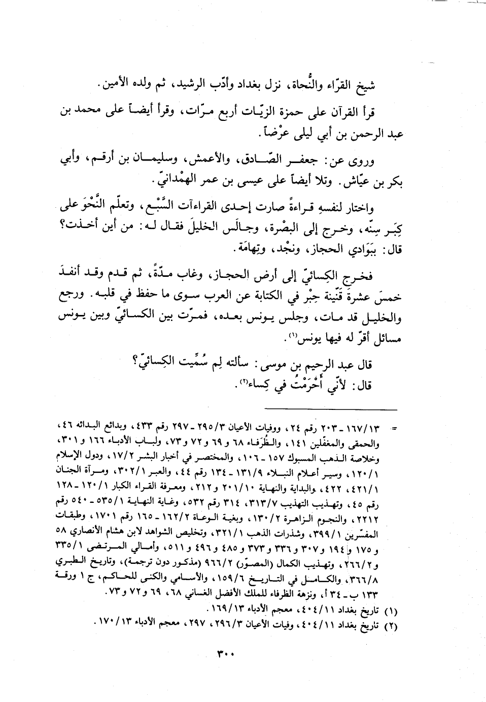 [ (- 13] / 167- 203 رقم 24، ووفيات الأعيان 3/ 295- 297 رقم 433، وبدائع البدائه 46، والحمقى والمغفّلين 141، والظرفاء 68 و 69 و 72 و 73، ولباب الأدباء 166 و 301، وخلاصة الذهب المسبوك 157- 106، والمختصر في أخبار البشر 2/ 17، ودول الإسلام 1/ 120، وسير أعلام النبلاء 9/ 131- 134 رقم 44، والعبر 1/ 302، ومرآة الجنان 1/ 421، 422، والبداية والنهاية 10/ 201 و 212، ومعرفة القراء الكبار 1/ 120- 128 رقم 45، وتهذيب التهذيب 7/ 313، 314 رقم 532، وغاية النهاية 1/ 535- 540 رقم 2212، والنجوم الزاهرة 2/ 130، وبغية الوعاة 2/ 162- 165 رقم 1701، وطبقات المفسّرين 1/ 399، وشذرات الذهب 1/ 321، وتخليص الشواهد لابن هشام الأنصاري 58 و 175 و 194 و 307 و 336 و 373 و 485 و 496 و 511، وأمالي المرتضى 1/ 335 و 2/ 266، وتهذيب الكمال (المصوّر) 2/ 966 (مذكور دون ترجمة) ، وتاريخ الطبري 8/ 366، والكامل في التاريخ 6/ 159، والأسامي والكنى للحاكم، ج 1 ورقة 133 ب- 34 أ، ونزهة الظرفاء للملك الأفضل الغساني 68، 69 و 72 و 73.