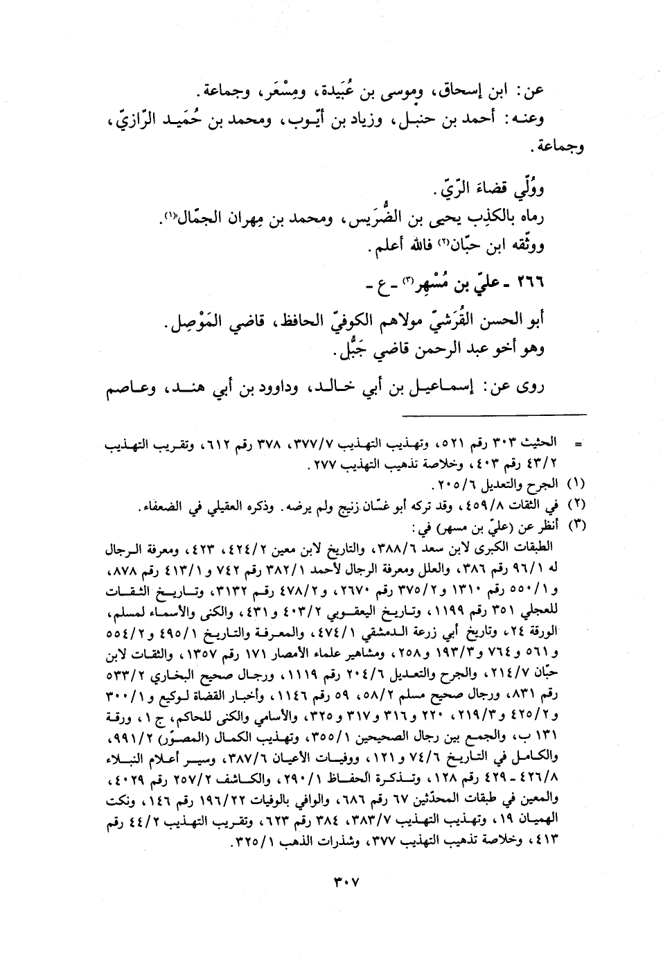 266- عليّ بن مسهر [3]- ع- أبو الحسن القرشيّ مولاهم الكوفيّ الحافظ، قاضي المَوْصل.