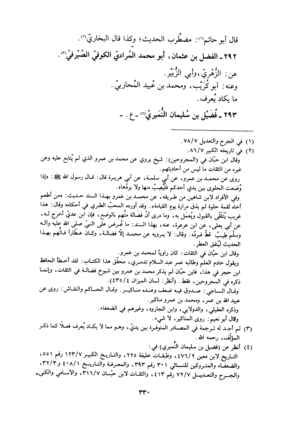 ويقول خادم العلم وطالبه عمر عبد السلام تدمري، محقّق هذا الكتاب: لقد أخطأ الحافظ ابن حجر في هذا، فابن حبّان لم يذكر محمد بن عمرو بين شيوخ فضالة في الثقات، وإنما ذكره في المجروحين، فقط. (انظر: لسان الميزان 4/ 435) .