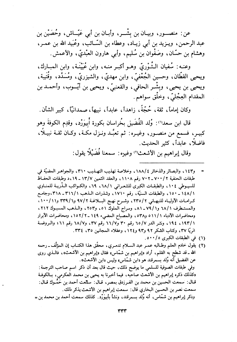 [2] يقول خادم العلم وطالبه عمر عبد السلام تدمري، محقّق هذا الكتاب إن المؤلّف- رحمه الله- قد شطح به القلم، أراد «إبراهيم بن شمّاس» فقال «إبراهيم بن الأشعث» ، فالذي روى عن الفضيل أنه ولد بسمرقند هو «ابن شمّاس» وليس «ابن الأشعث» .