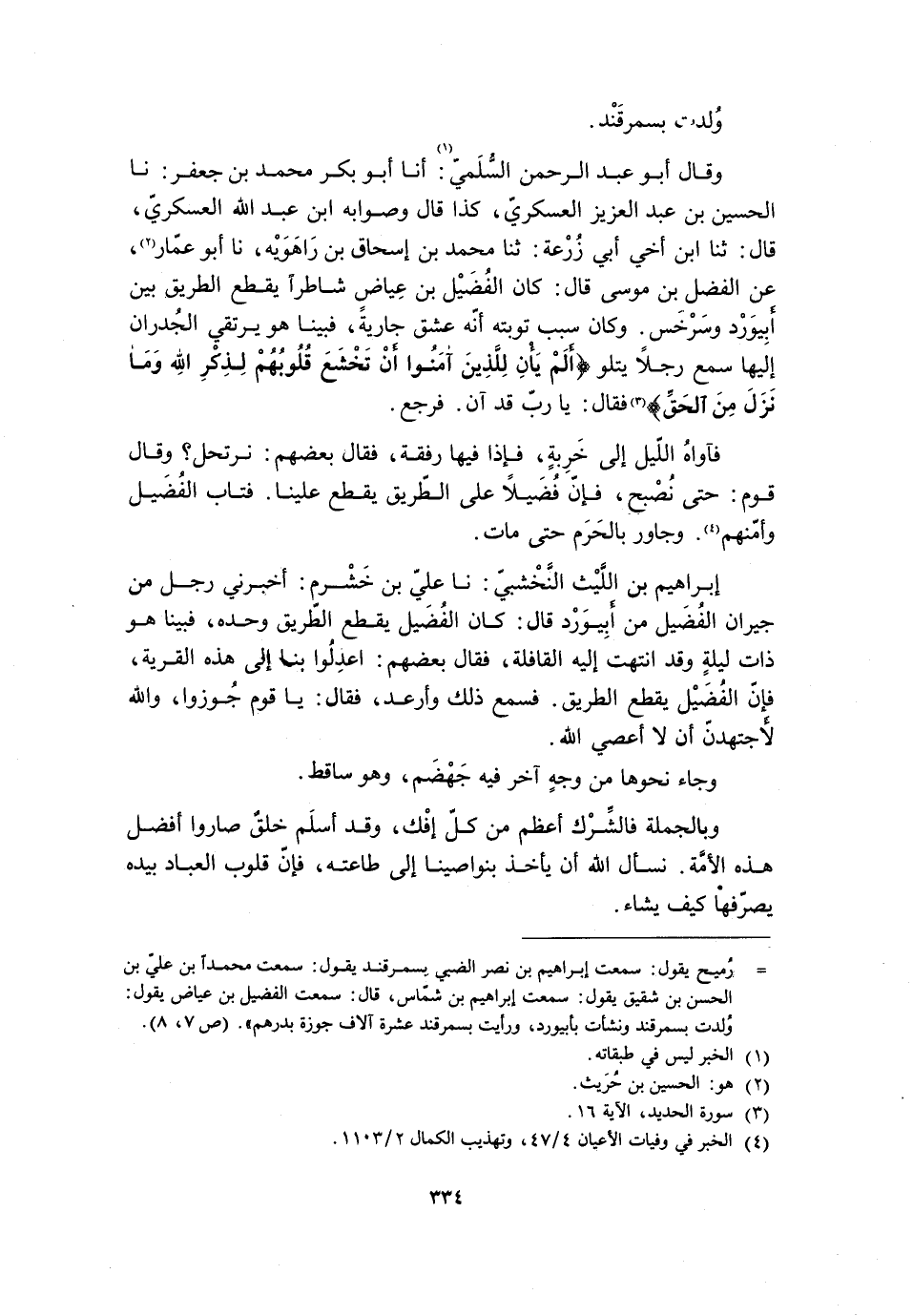 [ (-) ] رميح يقول: سمعت إبراهيم بن نصر الضبي بسمرقند يقول: سمعت محمدا بن عليّ بن الحسن بن شقيق يقول: سمعت إبراهيم بن شمّاس، قال: سمعت الفضيل بن عياض يقول: