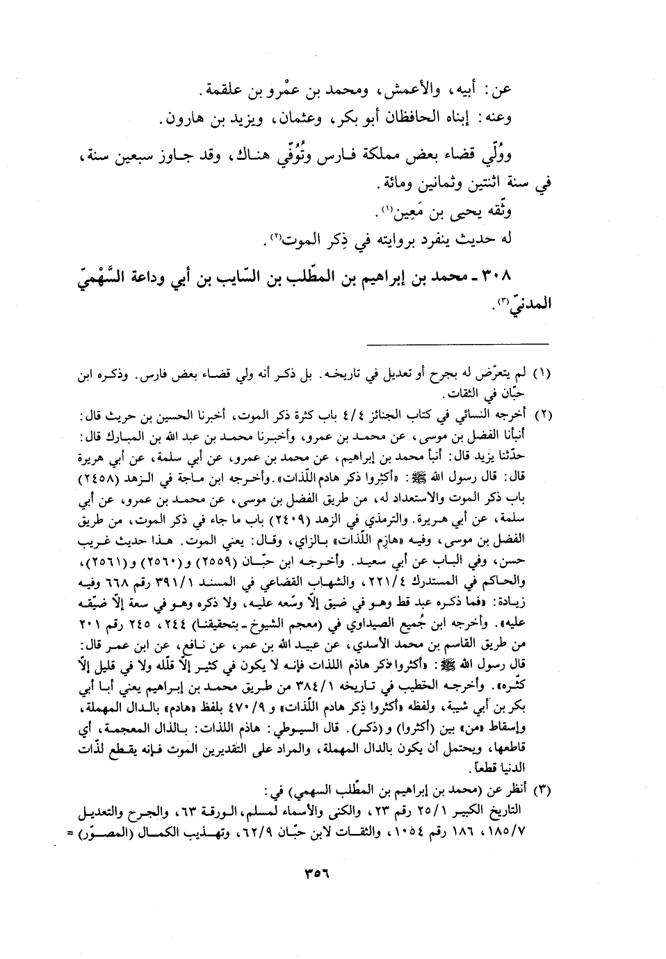 308- محمد بن إبراهيم بن المطّلب بن السّائب بن أبي وداعة السّهميّ المدنيّ [3] .