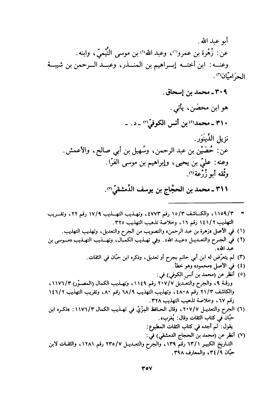 [ (- 3] / 1159، والكاشف 3/ 15 رقم 4773، وتهذيب التهذيب 9/ 17 رقم 22، وتقريب التهذيب 2/ 141 رقم 16، وخلاصة تذهيب التهذيب 325.