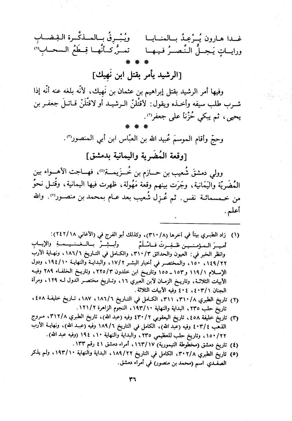 [5] تاريخ الطبري 8/ 302، الكامل في التاريخ 22/ 189، البداية والنهاية 10/ 193، ولم يذكر الصفدي اسم (محمد بن منصور) في أمراء دمشق.