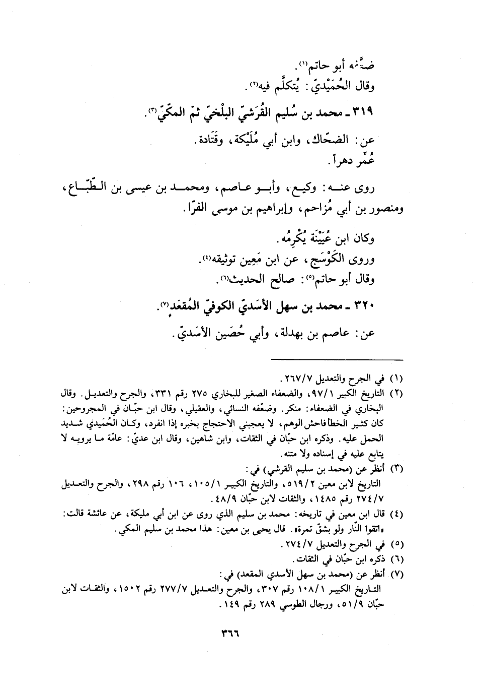 [2] التاريخ الكبير 1/ 97، والضعفاء الصغير للبخاريّ 275 رقم 331، والجرح والتعديل. وقال البخاري في الضعفاء: منكر. وضعّفه النسائي، والعقيلي، وقال ابن حبّان في المجروحين: