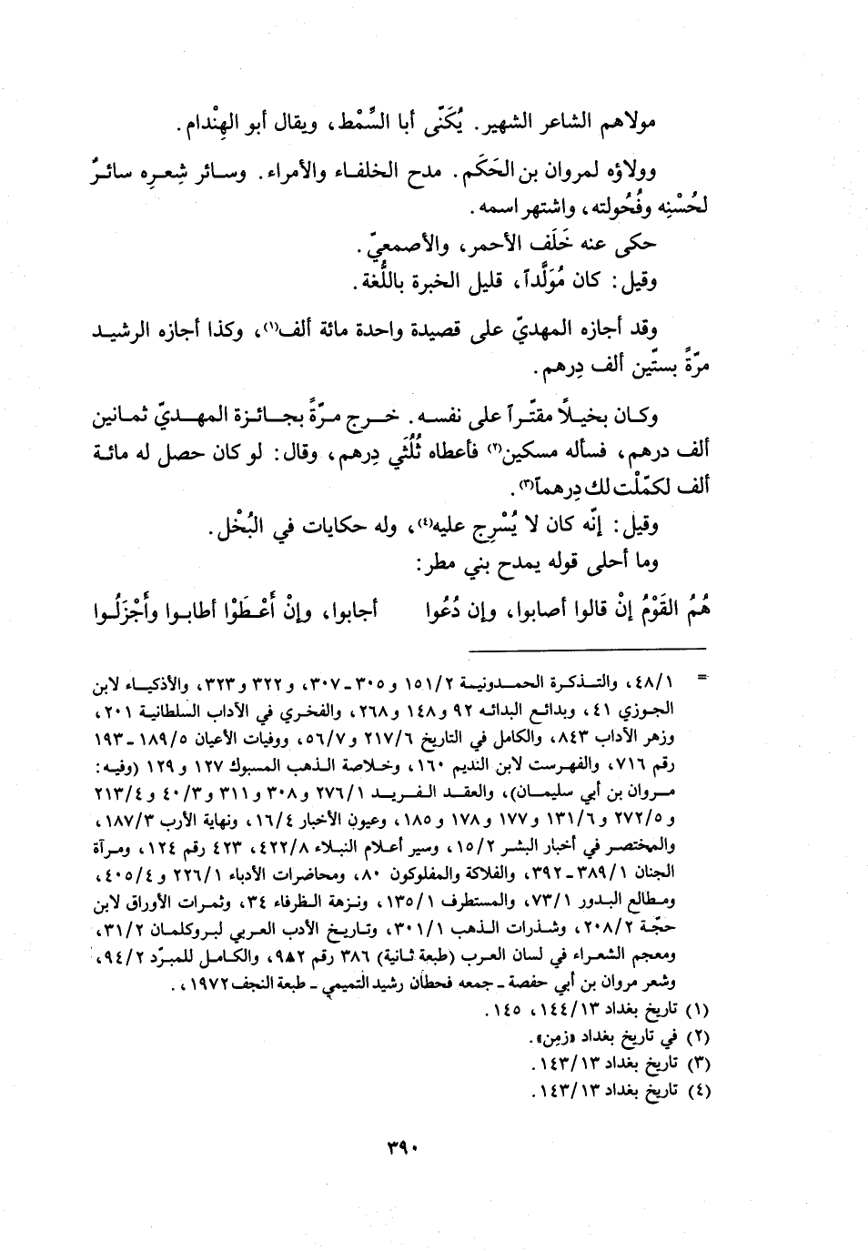 مروان بن أبي سليمان) ، والعقد الفريد 1/ 276 و 308 و 311 و 3/ 40 و 4/ 213 و 5/ 272 و 6/ 131 و 177 و 178 و 185، وعيون الأخبار 4/ 16، ونهاية الأرب 3/ 187، والمختصر في أخبار البشر 2/ 15، وسير أعلام النبلاء 8/ 422، 423 رقم 124، ومرآة الجنان 1/ 389- 392، والفلاكة والمفلوكون 80، ومحاضرات الأدباء 1/ 226 و 4/ 405، ومطالع البدور 1/ 73، والمستطرف 1/ 135، ونزهة الظرفاء 34، وثمرات الأوراق لابن حجّة 2/ 208، وشذرات الذهب 1/ 301، وتاريخ الأدب العربيّ لبروكلمان 2/ 31، ومعجم الشعراء في لسان العرب (طبعة ثانية) 386 رقم 982، والكامل للمبرّد 2/ 94، وشعر مروان بن أبي حفصة- جمعه فحطان رشيد التميمي- طبعة النجف 1972،.