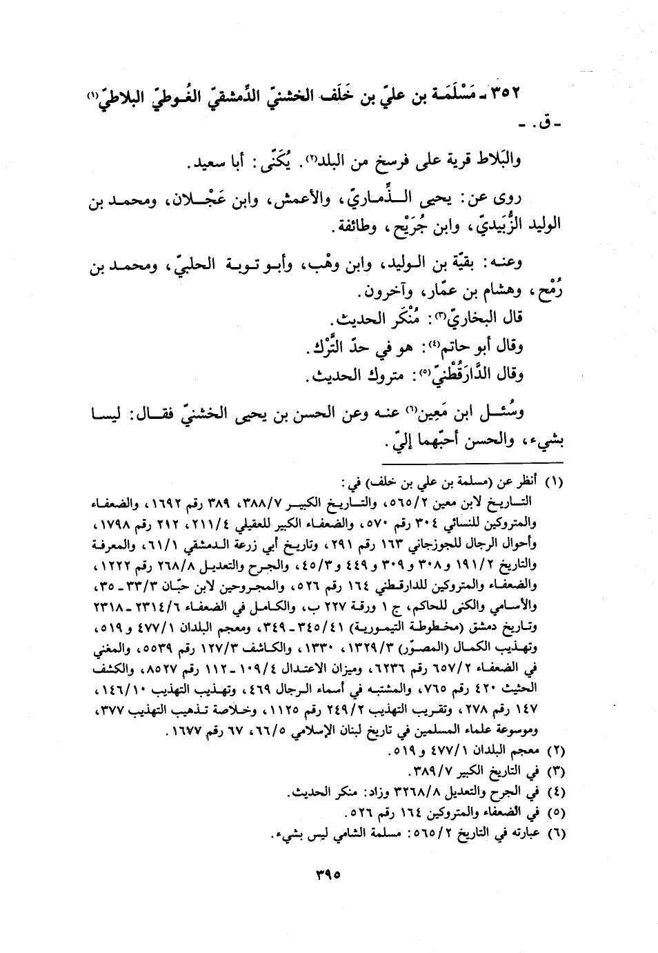 [6] عبارته في التاريخ 2/ 565: مسلمة الشامي ليس بشيء.