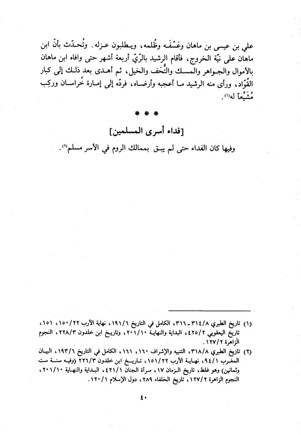 وَفِيهَا كَانَ الْفِدَاءُ حَتَّى لَمْ يَبْقَ بِمَمَالِكِ الرُّومِ فِي الأَسْرِ مسلم [2] .