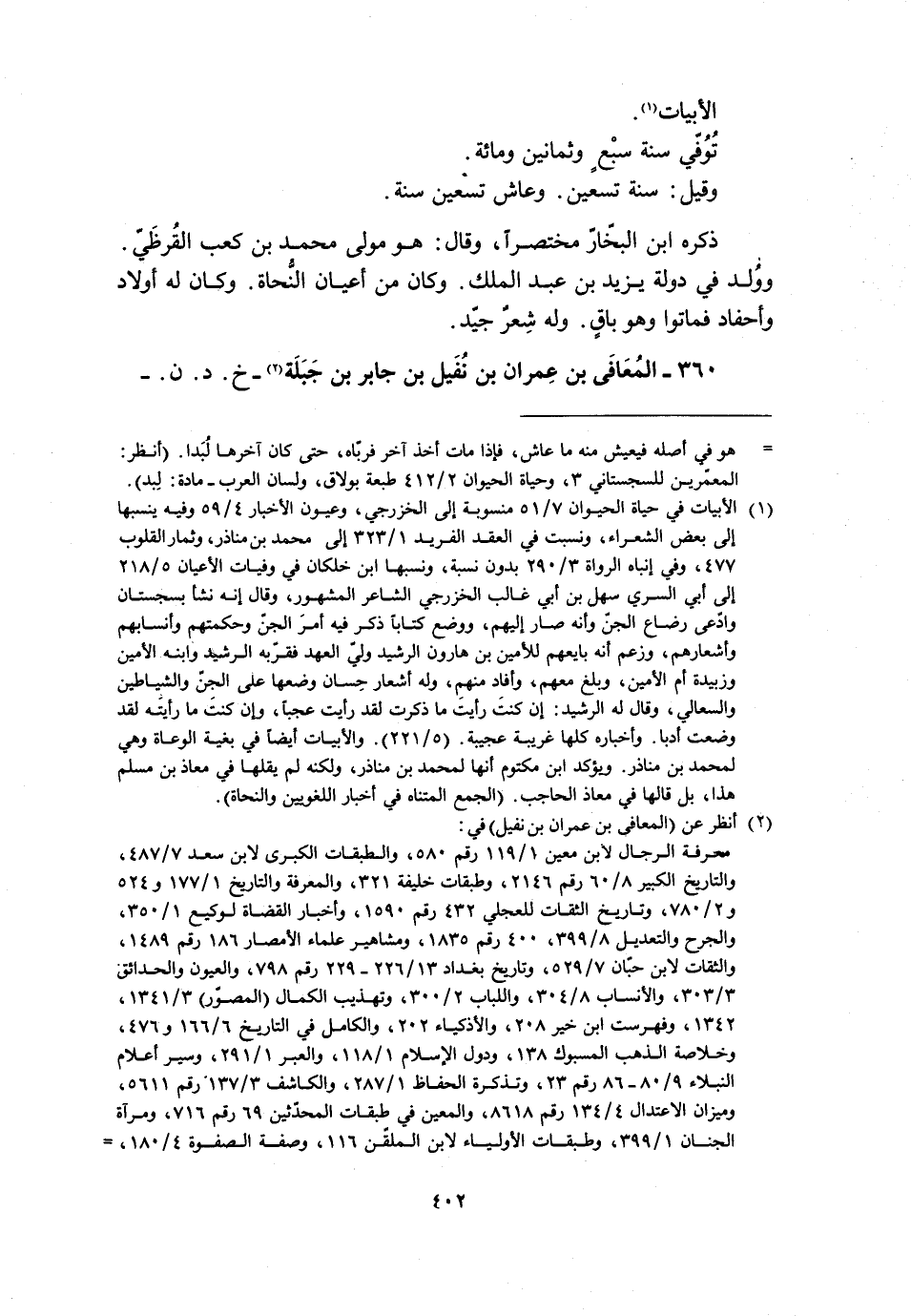 360- الْمُعَافَى بن عِمران بن نُفَيْلِ بن جابر بن جبلة [2]- خ. د. ن. -