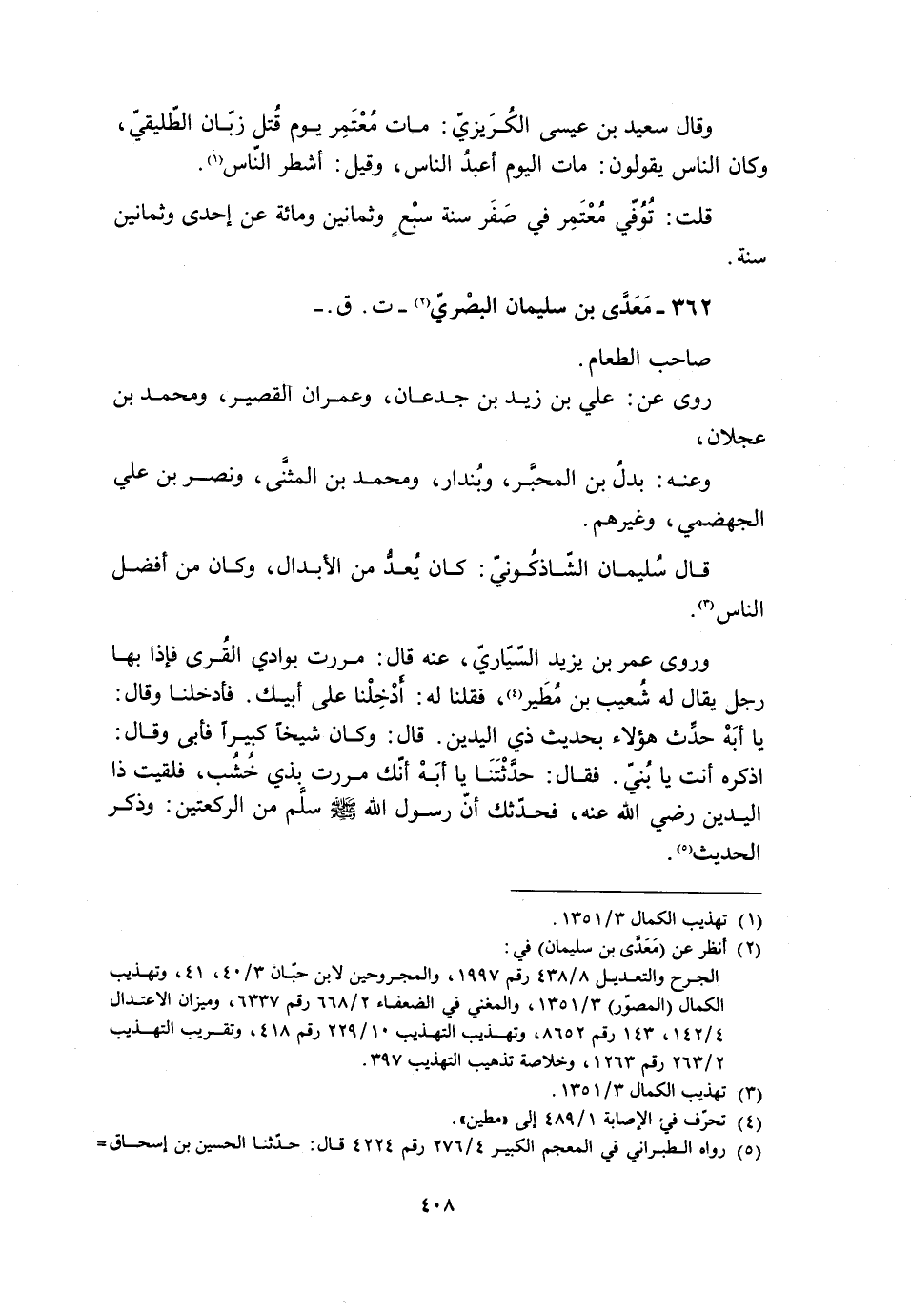 362- مَعَدَّى بن سُليمان البصْريّ [2]- ت. ق. - صاحب الطعام.